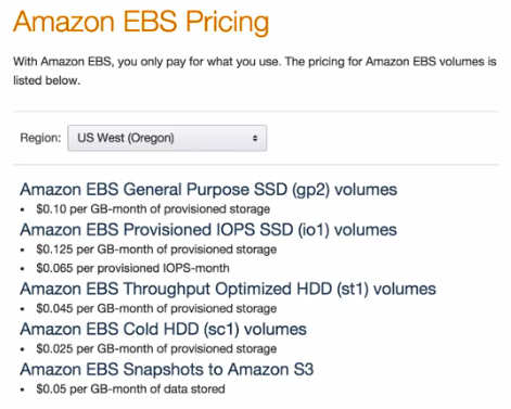 This topic Compare EBS volume types and EBS volume pricing.